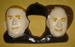 The museum incorporates these two Larry and Curly masks made from thick plastic by Ben Cooper in 1984, in excellent condition. It has airbrushed details, hair (on Larry's, of course), and the original tags still attached to the masks by two plastic threads. Product under license from Norman Maurer Productions. Condition: VERY FINE.
